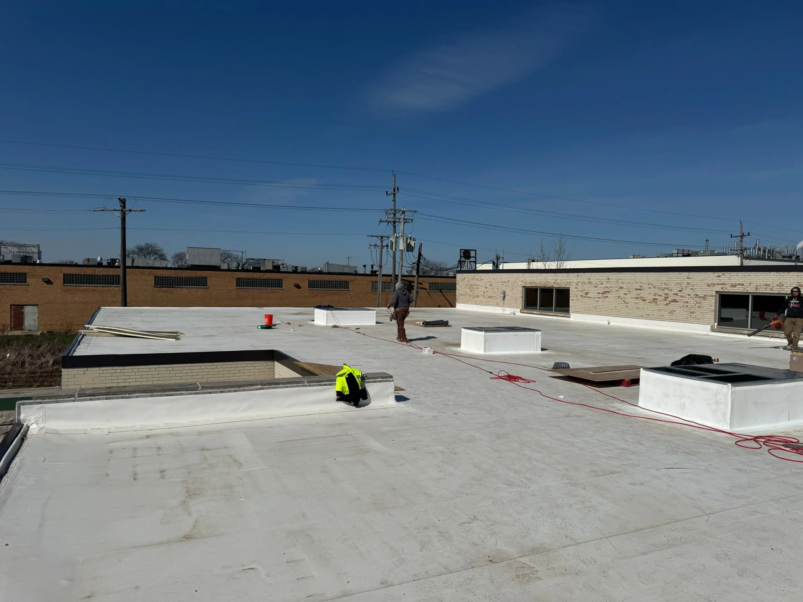 For many years, we have installed and serviced commercial roofing systems using TPO, PVC, and EPDM membranes. With professional installation, excellent weather resistance, and proven durability, these single-ply systems provide a reliable and cost-effective solution for flat and low-slope roofs in the Chicago area. Their flexibility and watertight seams allow them to perform exceptionally well despite extreme temperature fluctuations and harsh weather conditions.